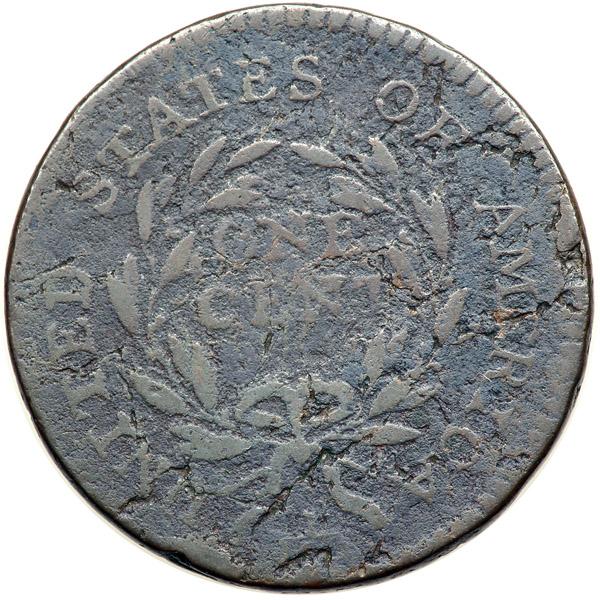 1795 S-74 R4- Lettered Edge G5. Slightly sharper but the fields and protected areas are covered with fine to moderate corrosion mixed with greenish verdigris. The devices are relatively smooth showing only microscopic roughness. Dark olive brown and steel mixed with chocolate. The date is bold and the legends are complete. The edge lettering is strong.