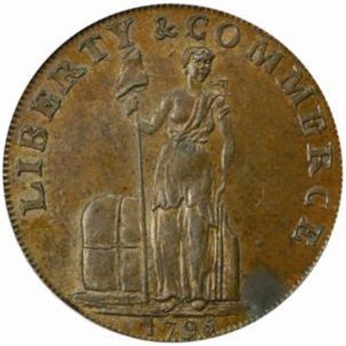 <style type="text/css"> body, td, th { font-family: Arial, Helvetica, sans-serif; font-size: 12px; color: #482424; margin: 0px; padding: 0px; } #header { background-image: url(http://www.bowersandmerena.com/ebay/images/template_v3_01.gif); clear: both; background-color: #590303; border-top-width: 2px; border-top-style: solid; border-top-color: #B38C4F;}#header #header_wrapper { height: 75px; clear: both; width: 800px; margin-right: auto; margin-left: auto; background-image: url(http://www.bowersandmerena.com/ebay/images/template_v3_03.gif); background-repeat: no-repeat; background-position: right; color: #F3EDCC;}#header #header_wrapper #header_logo { float: left; height: 75px; width: 444px; background-image: url(http://www.bowersandmerena.com/ebay/images/template_v3_02.gif); background-repeat: no-repeat; font-size: 10px; text-transform: capitalize; color: #B38C4F;}#header #header_wrapper #header_right { float: left; height: 75px; width: 356px; text-align: right;}#header #header_wrapper #header_right #headerLoginBtn { margin-bottom: 30px;}#header #header_wrapper #header_right input#txtSearch { color: #B49056; border: 1px solid #B49056; width: 175px; padding-top: 3px; padding-right: 3px; padding-bottom: 4px; padding-left: 3px;}#nav { height: 37px; background-image: url(http://www.bowersandmerena.com/ebay/images/template_v3_05.gif); clear: both;}#nav #nav_wrapper { height: 35px; width: 800px; margin-right: auto; margin-left: auto; border-left-width: 1px; border-left-style: solid; border-left-color: #B38C4F;}#nav #nav_wrapper a { padding-right: 15px; padding-left: 15px; border-right-width: 1px; border-right-style: solid; border-right-color: #B38C4F; height: 25px; padding-top: 10px; display: block; float: left; text-decoration: none; font-weight: bold; color: #5D0303;}#nav #nav_wrapper a:hover { color: #B38C4F;}#nav #nav_wrapper #search { float: right; padding-top: 7px;}#nav #nav_wrapper #search #txtSearch { font-family: Arial, Helvetica, sans-serif; font-size: 10px; text-transform: uppercase; color: #D2AE75; border: 1px solid #B38C4F; padding: 3px;}#content_bgd { background-image: url(http://www.bowersandmerena.com/ebay/images/template_v3_09.gif); background-repeat: repeat-y; background-position: center; padding-top: 15px; padding-bottom: 15px; background-color: #FBFBDB;}#content_wrapper { clear: both; height: auto; width: 800px; margin-right: auto; margin-left: auto;}.LotDetailWhite{ line-height:normal; font-size:13px; font-family: arial,helvetica,sans-serif; color: White; font-weight: bold;}.LotDetailInformation{ line-height:normal; font-size: 13px; font-family: arial,helvetica,sans-serif;}.LotDetailMessage{ line-height:normal; font-size: 13px; font-family: arial,helvetica,sans-serif; color: red;}}tr.HeaderAuctionTitle td { color: #000000; font-weight: bold; padding: 2px; background-image: url(http://www.bowersandmerena.com/ebay/images/template_v3_05.gif); background-repeat: repeat-x; border-bottom-width: 1px; border-bottom-style: solid; border-bottom-color: #B38C4F;}table.AuctionSummary a, table.AuctionSummary a:link, table.AuctionSummary a:visited { color: #0000FF; text-decoration: none;}}td.tableHeaderLeft { border-left-width: 1px; border-left-style: solid; border-left-color: #B38C4F;}td.tableHeaderRight { border-right-width: 1px; border-right-style: solid; border-right-color: #B38C4F;}td.tableCellMiddle { border-left-width: 1px; border-left-style: solid; border-left-color: #B38C4F; border-right-width: 1px; border-right-style: solid; border-right-color: #B38C4F; padding: 5px;}tr.footer td { border-top-width: 1px; border-top-style: solid; border-top-color: #B38C4F;}</style></head><body><div id="header"> <div id="header_wrapper"> <div id="header_logo"> </div> <div id="header_right"> </div> </div></div><div id="nav"> <div id="nav_wrapper"> <a href="http://www.bowersandmerena.com">Our eBayLive Auctions</a> <a href="#PaymentInfo">Payment Information</a> <a href="#ShippingInfo">Shipping Information</a> <a href="#About">About Bowers and Merena</a> </div></div><div id="content_bgd"> <div id="content_wrapper"> <table width="100%" border="0" cellpadding="5" cellspacing="0" class="AuctionSummary"> <tbody> <tr class="HeaderAuctionTitle" style="height: 25px;"> <td align="left" class="tableHeaderLeft" > </td> <td align="center" class="tableHeaderRight"> <span style="font-size: large;">Lot #214. 1795 Talbot, Allum & Lee Cent. Breen-1035 (?). Thick Planchet (?). MS-64 BN (PCGS).</span> </td> </tr> <tr> <td colspan="3" class="tableCellMiddle"> The PCGS holder precludes us from determining whether this coin was struck on a thick or thin planchet. As such, we are also unable to determine whether the proper attribution for this piece is Breen-1035 or Breen-1036, respectively. Dominant copper-brown patina is interspersed with lighter sandy-tan toning that is a bit more prevalent on the reverse. There is also a blush of gray-brown color at the lower-right obverse border. Sharply struck and overall smooth, this piece seems to be just a few stray blemishes away from an even higher grade.