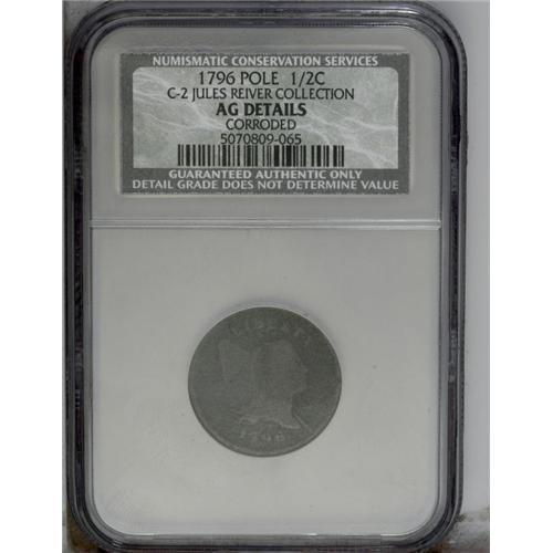 1796 1/2 C With Pole. C-2, B-2, R.4 AG3 Uncertified. D 1796[1/2 C] With Pole. C-2, B-2, R.4. Die Sta