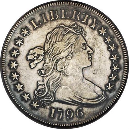 <B>1796 $1 Large Date, Small Letters XF40 PCGS.</B></I> B-5, BB-65, R.4. Bowers-Borckardt Die State II. The sole Large Date die pairing of the date. Autumn-gold and aquamarine tints visit this bright representative. About one-quarter of the breast feathers are bold, and the majority of the initial hair detail is present.<BR><BR><B>Coin Engraver:</B> Robert Scot<BR><BR><b>Shipping:</b> Coins & Currency (<a target="_blank" href="http://www.heritageauctions.com/common/shipping.php">view shipping information</a>)