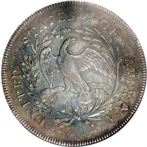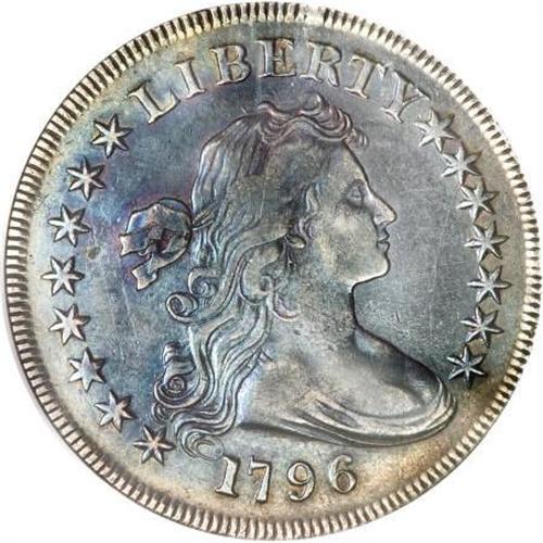 <B>1796 $1 Large Date, Small Letters--Tooled, Cleaned--ANACS. XF Details</B></I> B-5, BB-65, R.4. Large Date, Small Letters. The tooling notation on the holder refers to a small area in the left obverse field that has been smoothed, possibly to obscure a scratch or other defect. The cleaning was not harsh and the centers have since toned to a dark green-blue that transitions to rose and gold coloration at the peripheries. This is Die State III, which has the large lump connecting I and C of AMERICA on the reverse. For some reason, many examples of BB-65 come with problems, some far worse than the issues found on this nicely detailed coin.<BR><BR><B>Coin Engraver:</B> Robert Scot<BR><BR><b>Shipping:</b> Coins & Currency (<a target="_blank" href="http://www.heritageauctions.com/common/shipping.php">view shipping information</a>)