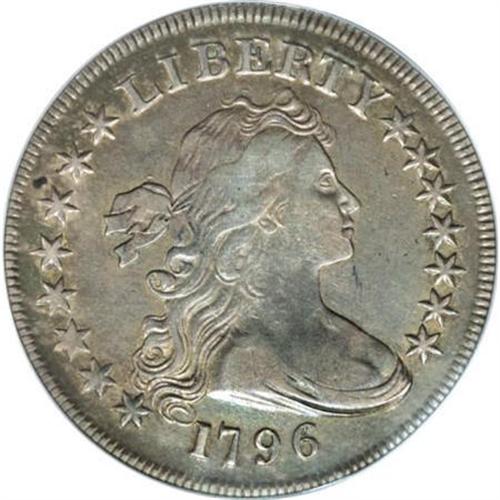 <B>1796 $1 Large Date, Small Letters--Cleaned--ANACS. VF30 Details.</B></I> B-5a, BB-65, R.4. The 6 in the date is double punched, a leaf is under the A in STATES, and a large die lump connects the top and middle of IC in AMERICA, and extends nearly to the above dentils. Golden-gray surfaces display sky-blue accents, and possess well defined design features. Some fine hairlines are visible under high magnification, but neither side reveals mentionable abrasions. A nice looking coin, despite the ANACS disclaimer.<BR><I>From The John Stimson, Sr. Collection, Part Two.</B></I><BR><BR><B>Coin Engraver:</B> Robert Scot<BR><BR><b>Shipping:</b> Coins & Currency (<a target="_blank" href="http://www.heritageauctions.com/common/shipping.php">view shipping information</a>)