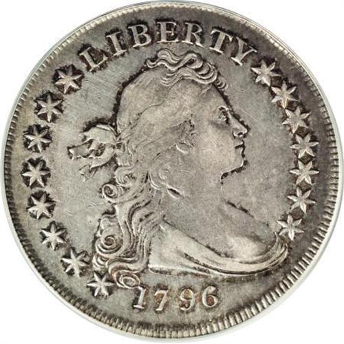 <B>1796 $1 Small Date, Small Letters--Scratched, Cleaned--ANACS. XF45 Details.</B></I> B-1, BB-66, R.4. This well detailed Small Eagle dollar is generally cream-gray but has freckles of golden-tan and apple-green in protected areas. Hairlines are evident beneath a loupe, and a scratch passes through the IT in UNITED. <BR><BR><B>Coin Engraver:</B> Robert Scot<BR><BR><b>Shipping:</b> Coins & Currency (<a target="_blank" href="http://www.heritageauctions.com/common/shipping.php">view shipping information</a>)