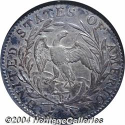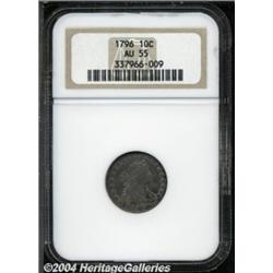<B>1796<10C> AU55 NGC.</B></I> JR-2, R.4. A scarcer variety promptly identified by the R in LIBERTY, which is entered high and too far to the left. Navy-blue, rose, golden-brown, and olive colors enrich this boldly detailed first year Dime. Only the center of the eagle's breast exhibits noticeable friction. Liberty's cheek has a few faint handling marks, and the right obverse field has a small area of slightly granular surface, probably as made. The Small Eagle type was only struck for two years, 1796 and 1797, with a combined mintage of just 47,396 pieces spread over eight die pairings.<BR><I>From The Karl Scheible Collection.</B></I> <BR><BR><B>Important notice:</B> Heritage usually auctions material at the rate of 200-250 lots per hour. On some occasions eBay Live bid software or the Internet may not be able to keep up with the pace of the auction. We recommend placing a realistic absentee bid now as insurance to avoid disappointment. Occasionally the auctioneer may eliminate or reject an eBay Live bid, and the auctioneer may also reopen a lot after the close of the eBay live bidding (usually because we missed an audience bid), and may reject your bid even if it shows you as the winning bidder. By bidding via eBay Live, you agree that Heritage may award the lot to another bidder at its sole discretion under the circumstances described above or any other reasonable circumstances. Since eBay bids are not shown to us until we open the lot on the floor, we treat those bids just like floor bids. In most cases the floor responds before the eBay bid is presented to us, due to Internet lag time, so for consistency we have made it a policy that floor bids are always considered first over tie eBay live bids. Also please note that all Heritage lots purchased through eBay Live carry a 20% Buyer's Premium. Please make sure you read the Terms and Conditions before you bid. </span></font></tr></table></td></tr></table>