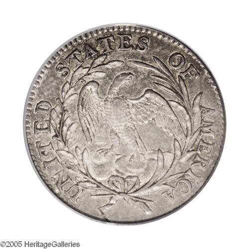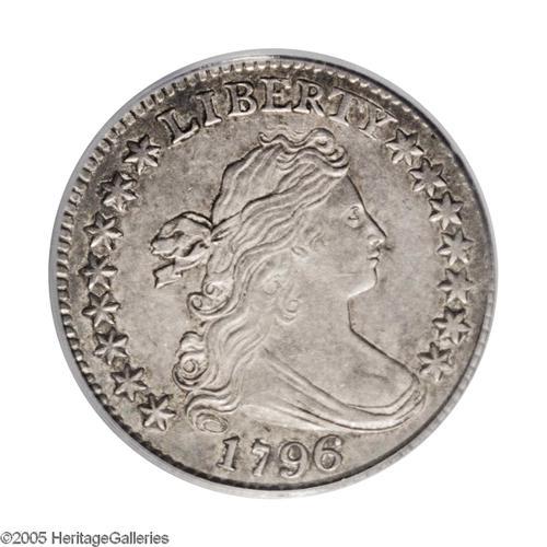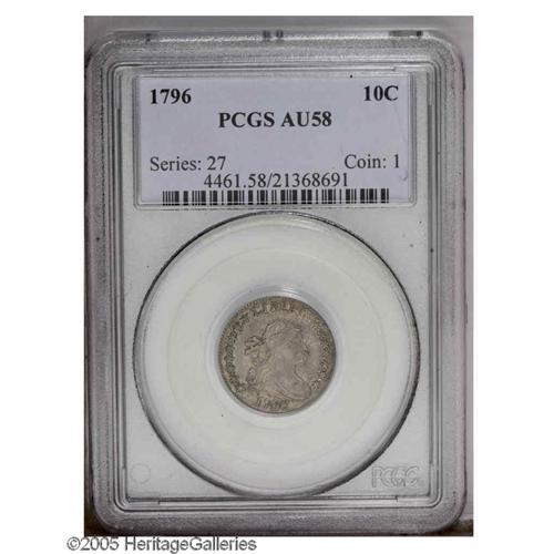 1796 10C AU58 PCGS. JR-3, R.5. A leaf touches the base 1796[10C] AU58 PCGS.