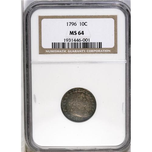 1796 10C MS64 NGC. JR-4, R.4. TY touch on this variety 1796