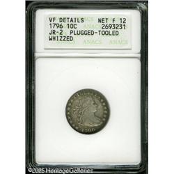 <B>1796 10C --Plugged, Tooled, Whizzed--ANACS. VF Details, Net Fine 12.</B></I> JR-2, R.4. A scarce variety, JR-2 is identified by a berry below the left edge of the first S in STATES. Considering the assigned grade, this is a pleasingly detailed, relatively attractive survivor that bears few abrasions on either side, and only displays a modicum of wear. There are rather heavy roller marks (as struck) that extend over the center of the obverse, and faint hairlines are indicative of an ill-advised cleaning at some point in the past. Lot:6172