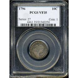 <table><tr><td><TABLE cellSpacing=0 cellPadding=0 width="100%" bgColor=#000000 border=0><TBODY> <TR><TD width="100%"><TABLE cellSpacing=1 cellPadding=3 width="100%" border=0><TBODY><TR><TD width="100%" bgColor=#79735c><FONT face=arial color=#ffffff size=3><B>Description</B> </FONT></TD></TR><TR><TD width="100%" bgColor=#ffffff><FONT face=arial size=2><B>1796 10C VF35 PCGS.</B></I> JR-4, R.4. Scarcer than JR-1 or JR-6, the JR-4 variety has its highest berry before the S in STATES, while the 6 in the date is entered high and nearly touches the bust. Richly toned in olive and lilac colors, this first year Dime offers ample definition with the hair curls and the eagle's wings. A small contact mark in the upper right obverse field is mentioned primarily for pedigree purposes. </FONT></TD></TR></TBODY></TABLE></TD></TR></TBODY></TABLE><BR><A name=PricesRealized></A><TABLE cellSpacing=0 cellPadding=0 width="100%" bgColor=#000000 border=0><TBODY><TR><TD width="100%"><TABLE cellSpacing=1 cellPadding=3 width="100%" border=0><TBODY><TR><TD width="100%" bgColor=#79735c><A name=PR><FONT face=arial color=#ffffff size=3><B>Previous Prices from Heritage Auctions</B> </FONT></A></TD></TR><TR><TD bgColor=#f6f6ed><TABLE cellSpacing=0 cellPadding=0 width="100%" border=1><TBODY><TR><TD align=middle width="33%"><B>Date</B></TD><TD align=middle width="33%"><B>Service</B></TD><TD align=middle width="33%"><B>Price</B></TD></TR><TR bgColor=whitesmoke><TD width="33%"><B>08/02/1997</B></TD><TD width="33%">ANACS</TD><TD width="33%">$2,530.00</TD></TR></TBODY></TABLE></TD></TR><TR><TD bgColor=#ffffff><FONT face=arial size=1 ?>PLEASE NOTE: All prices realized reflect the final hammer price PLUS the buyer's premium in auctions that charge a buyer's premium. Each item has a notation at the top of the listing indicating whether that lot included a buyer's premium. Example: A item that sells with a final hammer price of $100 and a 20% buyer's premium will display with a price realized of $120. All information listed is intended to be as accurate as possible, but errors are possible. Please use this guide carefully and inform us of any inaccuracies. </FONT></TD></TR></TBODY></TABLE></TD></TR></TBODY></TABLE><BR><TABLE cellSpacing=0 cellPadding=0 width="100%" bgColor=#000000 border=0><TBODY><TR><TD width="100%"><TABLE cellSpacing=1 cellPadding=3 width="100%" border=0><TBODY><TR><TD width="100%" bgColor=#79735c colSpan=6><FONT face=arial color=#ffffff size=3><B>Price Guide*</B> </FONT></TD></TR><TR bgColor=#f6f6ed><TD align=middle><B>Grade</B> </TD><TD align=middle><B>Coin World<BR>(Trends)</B> </TD><TD align=middle><B>Numismedia<BR>Retail</B> </TD><TD align=middle><B>Numismedia<BR>Wholesale</B> </TD><TD align=middle><B>Coin<BR>Universe</B> </TD><TD align=middle><B>Heritage<BR>Value Index</B> </TD></TR><TR bgColor=#ffffff><TD align=middle>30</TD><TD align=right>---</TD><TD align=right>---</TD><TD align=right>---</TD><TD align=right>---</TD><TD align=right>$2,858.33</TD></TR><TR style="FONT-WEIGHT: bold" bgColor=#cccfdd><TD align=middle>35</TD><TD align=right>---</TD><TD align=right>---</TD><TD align=right>---</TD><TD align=right>---</TD><TD align=right>$3,299.38</TD></TR><TR bgColor=#ffffff><TD align=middle>40</TD><TD align=right>$5,000.00</TD><TD align=right>---</TD><TD align=right>$3,925.00</TD><TD align=right>$5,400.00</TD><TD align=right>$3,506.67</TD></TR><TR bgColor=#ffffff><TD colSpan=6><FONT size=1>*All information listed is intended to be as accurate as possible, but errors are possible. No item may be returned or refused based on this information which is provided as a service to our customers. You should contact each pricing source directly to determine the accuracy of this information. </FONT></TD></TR></TBODY></TABLE></TD></TR></TBODY></TABLE><BR><TABLE cellSpacing=0 cellPadding=0 width="100%" bgColor=#000000 border=0><TBODY><TR><TD width="100%"><TABLE cellSpacing=1 cellPadding=3 width="100%" border=0><TBODY><TR><TD width="100%" bgColor=#79735c><FONT face=arial color=#ffffff size=3><B>Population Guide</B> </FONT></TD></TR><TR bgColor=#ffffff><TD align=middle><!-- Begin Output of Population Grid--><TABLE cellSpacing=0 cellPadding=0 width="100%" border=0><TBODY><TR><TD vAlign=center><TABLE cellSpacing=0 width="100%" border=1 cellsadding="3"><TBODY><TR><TD vAlign=center><TABLE cellSpacing=0 cellPadding=3 width="100%" border=1><TBODY><TR><TD vAlign=center align=middle bgColor=#f0f1e8 colSpan=2 <CENTER><FONT face=Arial size=2><B>PCGS Pop </B></FONT><CENTER></CENTER></TD><TD vAlign=center align=middle bgColor=#f0f1e8 colSpan=2><CENTER><FONT face=Arial size=2><B>NGC Pop</B></CENTER></FONT></TD></TR><TR><TD vAlign=center><FONT face=Arial size=2>(35)</FONT> </TD><TD vAlign=center align=right><FONT face=Arial size=2>10</FONT> </TD><TD vAlign=center><FONT face=Arial size=2>(35)</FONT> </TD><TD vAlign=center align=right><FONT face=Arial size=2>2</FONT> </TD></TR><TR><TD vAlign=center><FONT face=Arial size=2>(>35)</FONT> </TD><TD vAlign=center align=right><FONT face=Arial size=2>120</FONT> </TD><TD vAlign=center><FONT face=Arial size=2>(>35)</FONT> </TD><TD vAlign=center align=right><FONT face=Arial size=2>123</FONT> </TD></TR></TBODY></TABLE></TD></TR></TBODY></TABLE></TD></TR></TBODY></TABLE><!-- End Output of Population Grid--></TD></TR></TBODY></TABLE></TD></TR></TBODY></TABLE><BR><TABLE cellSpacing=0 cellPadding=0 width="100%" bgColor=#000000 border=0><TBODY><TR> Important notice: Heritage usually auctions material at the rate of 200-250 lots per hour. On some occasions eBay Live bid software or the Internet may not be able to keep up with the pace of the auction. We recommend placing a realistic absentee bid now as insurance to avoid disappointment. Occasionally the auctioneer may eliminate or reject an eBay Live bid, and the auctioneer may also reopen a lot after the close of the eBay live bidding (usually because we missed an audience bid), and may reject your bid even if it shows you as the winning bidder. By biddin