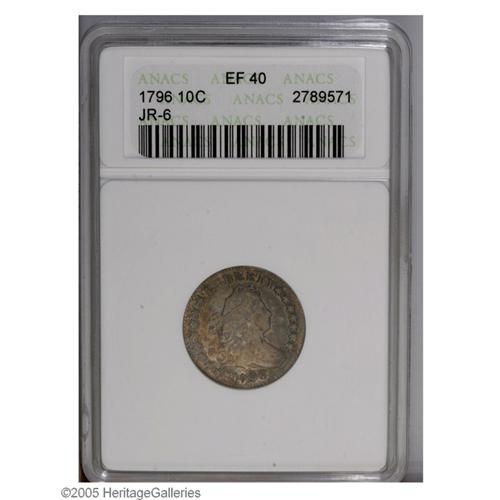 1796 10C XF40 ANACS. JR-6, R.3. Golden-brown, aqua, an 1796[10C] XF40 ANACS.