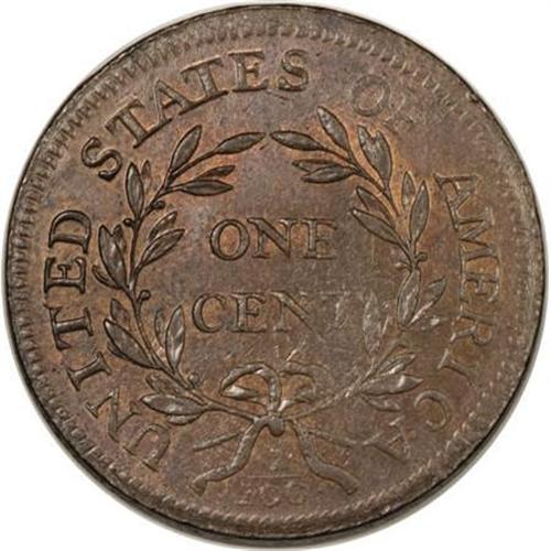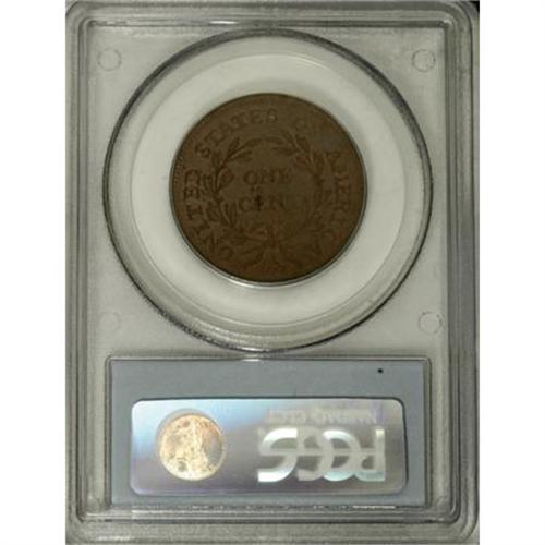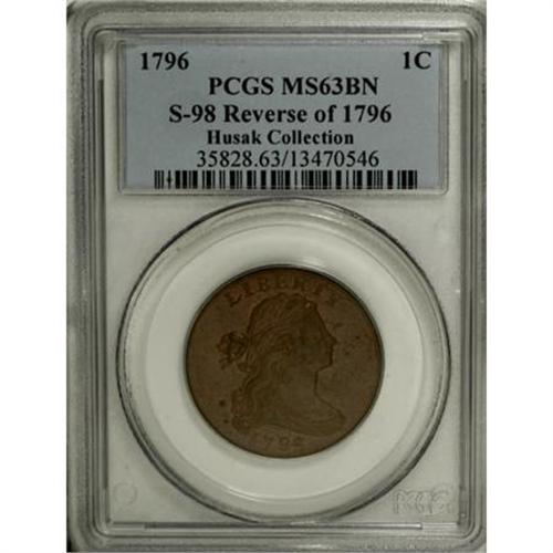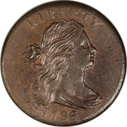 <B>1796 1C Draped Bust, Reverse of 1795. MS63 Brown PCGS. S-98, B-21, R.4.</B></I> <B>Bland MS62; CC-2. Noyes MS60; CC-2. Photo #21840. Our EAC Grade MS60.<BR><BR>Equivalents.</B></I> Gilbert 3; McGirk 6A; Ross 3C; Clapp-Newcomb 3; EAC 21; <I>Encyclopedia</B></I> 1688; PCGS #1401.<BR><B><BR>Variety. </B></I>B leans right and ERT are widely spaced. Reverse of 1795. Three outside triplets below UNITED. The obverse appears on S-98 and S-99. The reverse appears on S-97 and 98.<BR><B><BR>Surfaces. </B></I>Remarkable light brown color on both sides, blended with considerable faded mint red, mostly outlining the devices. A dark olive toning spot in the left obverse field is located left of the lower hair curls. Considerable flan roughness is evident as a result of the original planchet before the coin was struck.<BR><B><BR>Die State II.</B></I> A short crack joins the right top of Y to the obverse border.<BR><B><BR>Appearances. </B></I>The obverse and reverse are illustrated in Noyes (2007).<BR><B><BR>Census.</B></I> Just two examples of S-98 exist in Mint State according to Bland and Noyes. They each record a single finer example, in the ANS Collection. This coin, the only other Mint State S-98 cent known, is the finest example outside of a museum. <BR><B><BR>Commentary.</B></I> The second finest 1796 Draped Bust cent in the Husak Collection, it also ranks as one of the finest known examples of the entire series dated 1796.<BR><B><BR>Historical Note.</B></I> Dorothy Paschal purchased this coin at the Dupont sale on behalf of Stack's, and the coin was given to Dr. Sheldon as thanks for cataloging the sale.<BR><BR><B>Provenance.</B></I> <I>Charles J. Dupont (Stack's, 9/1954), lot 128, $600; Stack's via Dorothy Paschal; Dr. William H. Sheldon (4/1972); R.E. Naftzger, Jr. (2/1992); Eric Streiner (5/1992); John Whitney (Stack's, 5/1999), lot 1732, $25,300; Anthony Terranova.</B></I><BR><BR><B>Personality.</B></I> <B>Adam Eckfeldt</B></I> was born in Philadelphia on June 15, 1769 and was trained in mechanical pursuits. He was a tool and implement manufacturer who was hired as a contractor to build certain tools for the first Mint, including a screw press. He also turned and forged early dies for the facility. Eckfeldt was given a permanent position on January 1, 1796, as assistant coiner and served for more than 40 years, the last 25 as chief coiner. Many members of the extended Eckfeldt family followed in his footsteps, serving the Mint into the 20th century. George Evans noted that "his mechanical skill, his zeal, energy, and uprightness brought him many distinctions, both as an officer and a citizen."<BR><BR><b>Shipping:</b> Coins & Currency (<a target="_blank" href="http://www.heritageauctions.com/common/shipping.php">view shipping information</a>)