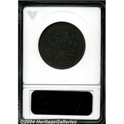<table><tr><td><table><tr><td>1796 1C Draped Bust, Reverse of 1796 Fine 15 ANACS. S-110, R.3. A scarcer variety identifiable by the die lump below the E in UNITED. Medium brown surfaces exhibit well balanced definition and show a touch of nearly inescapable granularity primarily on the reverse. <BR><BR><B>Important notice:</B> Heritage usually auctions material at the rate of 200-250 lots per hour. On some occasions eBay Live bid software or the Internet may not be able to keep up with the pace of the auction. We recommend placing a realistic absentee bid now as insurance to avoid disappointment. Occasionally the auctioneer may eliminate or reject an eBay Live bid, and the auctioneer may also reopen a lot after the close of the eBay live bidding (usually because we missed an audience bid), and may reject your bid even if it shows you as the winning bidder. By bidding via eBay Live, you agree that Heritage may award the lot to another bidder at its sole discretion under the circumstances described above or any other reasonable circumstances. Since eBay bids are not shown to us until we open the lot on the floor, we treat those bids just like floor bids. In most cases the floor responds before the eBay bid is presented to us, due to Internet lag time, so for consistency we have made it a policy that floor bids are always considered first over tie eBay live bids. Also please note that all Heritage lots purchased through eBay Live carry a 20% Buyer's Premium. Please make sure you read the Terms and Conditions before you bid. <BR><BR><B>IMPORTANT ANNOUNCEMENT ABOUT RESERVES:</B> Heritage now divulges all reserves on its web site 7 days before every auction. If you want to know whether the reserve on this lot has been met, and if not, what the reserve amount is, please visit this lot page on the HeritageCoin.com web site, or email: bid@HeritageGalleries.com </span></font></td></tr></table></td></tr></table>