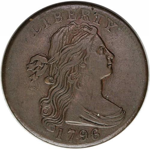 <B>1796<1C> Draped Bust, Reverse of 1796. S-93, B-34, Low R.3--Improperly Cleaned--NCS. XF Details. VF25 EAC.</B></I> Die State V. There are a few traces of lighter copper around the devices which apparently accounts for the improperly cleaned designation, as the balance of the coin is quite pleasing in color and surface quality. Sharply struck by the dies, and well preserved. Identifiable by a tiny dig on the upper left corner of the T in LIBERTY and a short scratch from the top curl of Liberty through the R. The obverse die state has the usual lumps below Liberty's ribbon, and die cracks around ER. On the reverse a nick resides just below and right of the top pair of leaves, and another smaller nick is found below TE of STATES. The reverse die state includes the heavy die crack through the tops of RICA with a rim cud below the right ribbon end, and several complex die cracks through the fraction. An impressive example of this variety with a sterling pedigree worthy of such a delightful coin. In the Noyes Condition Census as tied for 14th with two others.<BR><I>Ex: Dr. Willard J. Carmel; George Ewing; Dorothy Paschal; Del Bland (1/15/82).</B></I> Envelope Included.