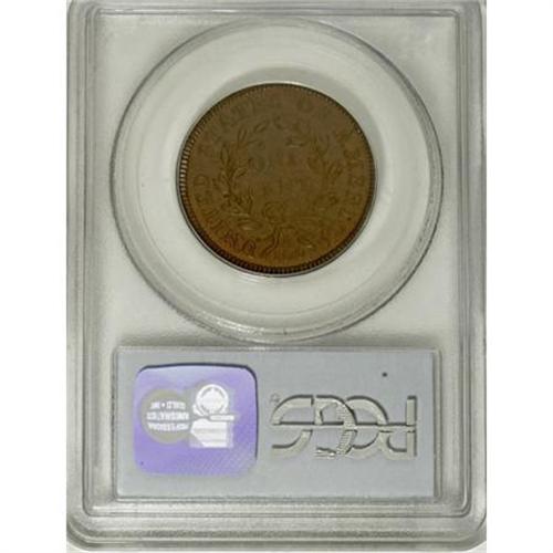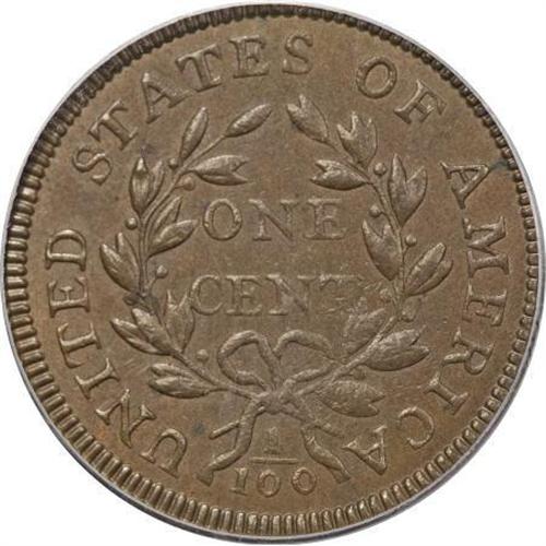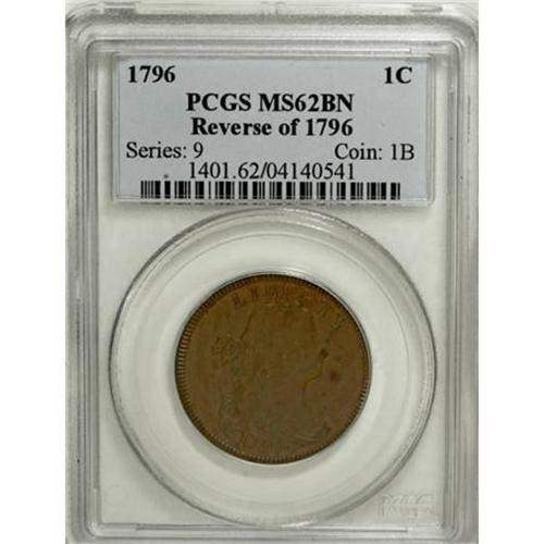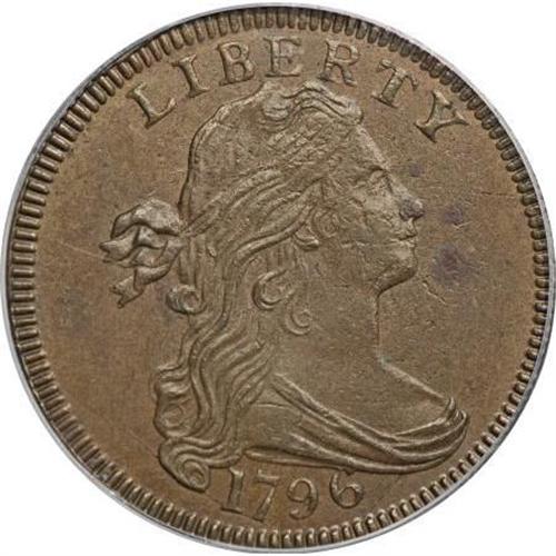 <B>1796 1C Draped Bust, Reverse of 1797 MS62 Brown PCGS.</B></I> S-119, B-40, R.3. The PCGS insert says "Reverse of 1796," when in fact this variety is the Reverse of 1797, confirmed by the following: the top of the 6 in the date is buried in the drapery, there is a double leaf under the last S in STATES and another under the D of UNITED, there is an outside berry under the stand of E, and a crack travels from the rim through the bottom of the curls and 17 of the date, with another crack below the 6. Pretty chestnut brown color graces both sides of this generally well struck, semi-gloss example. Some light marks on Liberty's portrait and a few more on the lower right reverse limit the grade. EAC 60.<BR><BR><B>Coin Engraver:</B> Robert Scot<BR><BR><b>Shipping:</b> Coins & Currency (<a target="_blank" href="http://www.heritageauctions.com/common/shipping.php">view shipping information</a>)