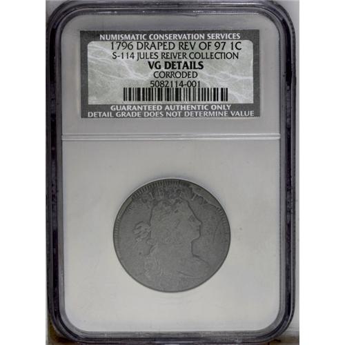 1796 1C Draped Bust, Reverse of 1797. S-114, B-42, R.5 1796[1C] Draped Bust, Reverse of 1797. S-114,
