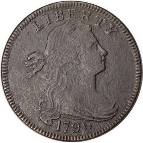 <B>1796 1C Draped Bust, Reverse of 1797. XF45 Details, Corroded, Cleaned, ANACS. S-118, B-39, High R.5.</B></I> <B>Bland VG10; tied for CC-6. Noyes VG8; CC-7. Photo #38176. Our EAC Grade VG10.<BR><BR>Equivalents.</B></I> Clapp-Newcomb 14; EAC 39; <I>Encyclopedia</B></I> 1699; PCGS #1407.<BR><B><BR>Variety. </B></I>Close date with 6 buried in the drapery. Reverse of 1797. Berry below upright of D. The obverse appears on S-118, S-119, and NC-6. The reverse appears on S-118.<BR><B><BR>Surfaces.</B></I> Dark olive with some reddish-brown patina on the reverse. A few splashes of deeper color are evident on both sides, with minor surface roughness. Sharpness is quite a bit finer than the net grade.<BR><B><BR>Die State II.</B></I> A narrow reverse rim break is confined to the dentils at about 6:30.<BR><B><BR>Appearances. </B></I>The obverse and reverse are illustrated in Noyes (2007).<BR><B><BR>Census.</B></I> At the low end of the traditional Condition Census, which is topped by an XF45 coin in the ANS Collection. Only three or four others grade Fine or better. The finest known ANS coin was graded MS60 in <I>Early American Cents</B></I> and AU55 in <I>Penny Whimsy</B></I>. Five of the top six examples in Bland's Census were known when <I>Penny Whimsy</B></I> was published, including the best four coins. This coin is likely the VG10 listed in <I>Penny Whimsy</B></I>.<BR><B><BR>Commentary.</B></I> Called Rarity-7 in both <I>Early American Cents</B></I> and in <I>Penny Whimsy</B></I>, Sheldon wrote that only 10 examples were accounted for in the latter reference, also commenting that he had only seen six pieces. Today, 30 to 40 pieces are known, although most of the new ones seem to be lower-grade.<BR><BR><B>Provenance.</B></I> <I>Henry C. Hines; William Rabin; Dr. Charles L. Ruby, Part I (Superior, 2/1974), lot 459, $225; Charles A. Blood; Early American Coppers (1999), lot 186, $850; Chris Victor-McCawley; Dr. Wallace Lee (Superior, 5/2003), lot 414, $2,185.</B></I><BR><BR><B>Personality.</B></I> Maine resident <B>Charles A. Blood</B></I> became charter member #48 in EAC in 1967, and is an active numismatist to the present day. Blood appeared in a late 1987 retrospective in <I>Penny-Wise</B></I> that feted the 20 charter members still in the club two decades after its inception.<BR><BR><b>Shipping:</b> Coins & Currency (<a target="_blank" href="http://www.heritageauctions.com/common/shipping.php">view shipping information</a>)
