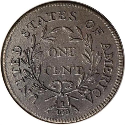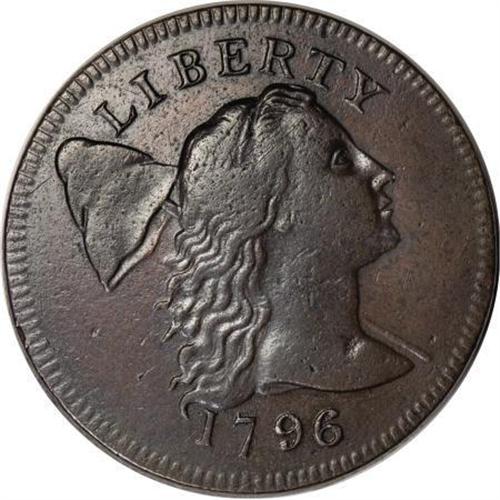 <B>1796 1C Liberty Cap. AU50 Details, Corroded, Cleaned, ANACS. S-86, B-7, R.5.</B></I> <B>Bland VF25; CC-5. Noyes VF20; tied for CC-5. Photo #25050. Our EAC Grade VF20.<BR><BR>Equivalents.</B></I> Proskey 5; Doughty 76; Gilbert L; McGirk 1B; Clapp-Newcomb K; EAC 7; <I>Encyclopedia</B></I> 1681; PCGS #1392.<BR><B><BR>Variety. </B></I>Date slants down to right, 6 far from bust. Short leaf nearly touches right base of E in UNITED. The obverse appears on S-84, S-85, S-86, and S-87. The reverse appears on S-86. Plain Edge.<BR><B><BR>Surfaces.</B></I> Hard surfaces, but with some old corrosion on each side of this tan and light blue cent, with a few other typical imperfections that are associated with the grade. It has been cleaned and recolored, but nicely so.<BR><B><BR>Die State II.</B></I> Tiny die chips are evident in the field near Liberty's nose and mouth. The obverse die has been ground down, with shallow details of Liberty's profile open or missing.<BR><BR><B>Appearances. </B></I>The obverse and reverse are illustrated in Noyes (2007).<BR><BR><B>Census.</B></I> Despite the lower VF grade, this piece retains a position within the top six examples of the variety known today. An AU50, an XF40 in the ANS, and two VF35 coins are the only better ones listed in Bland's Census.<BR><BR><B>Commentary.</B></I> The reverse is a tad weaker than the obverse, with a few ghost leaves that are nearly lapped away, especially in the right branch.<BR><BR><B>Provenance.</B></I> <I>Henry C. Hines; Dr. William H. Sheldon; T. James Clarke; later, Federal Coin Exchange (10/1955), lot 1160, $155; Dorothy Paschal; Myles Z. Gerson; Jack Beymer; Dr. Robert J. Shalowitz; Dr. C.R. Chambers (10/1989); Dennis Mendelson (7/1991); Robinson S. Brown, Jr. (Superior, 1/1996), lot 121, $2,860.</B></I><BR><BR><B>Personality.</B></I> A Chicago businessman, <B>Myles Zachary Gerson</B></I> was born on August 15, 1925, and died in May 1986. In March 1944, he enlisted in the Army and served for the duration of World War II. At that time, he was a resident of Queens, New York. Years later, Gerson was listed in several editions of <I>Who's Who in Finance and Industry, Who's Who in the Midwest, </B></I>and<I> Who's Who in the World. </B></I>His impressive collection of early and middle-date large cents was sold privately.<BR><BR><b>Shipping:</b> Coins & Currency (<a target="_blank" href="http://www.heritageauctions.com/common/shipping.php">view shipping information</a>)