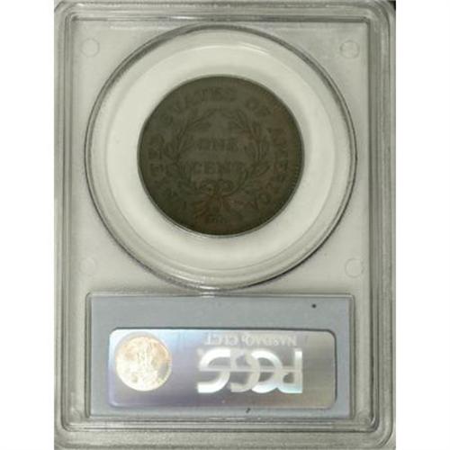 <B>1796 1C Liberty Cap. AU55 PCGS. S-90, B-11, High R.5.</B></I> <B>Bland VF35; CC-5. Noyes VF25; CC-5. Photo #25444. Our EAC Grade VF25.<BR><BR>Equivalents.</B></I> Gilbert I; McGirk 4A, 4B; Ross 6F; Clapp-Newcomb I; EAC 11; <I>Encyclopedia</B></I> 1682; PCGS #1392.<BR><B><BR>Variety. </B></I>Crowded head; date and LIBERTY touch the device. Leaf pair below ER. The obverse appears on S-89 and S-90. The reverse appears on S-90. Plain Edge.<BR><B><BR>Surfaces. </B></I>An exceptional specimen with lighter tan and darker steel toning splashed on medium chocolate surfaces. The only flaw is a tiny rim bruise below the left ribbon end, and a slightly incomplete planchet at 8 o'clock.<BR><BR><B>Die State I. </B></I>An early die state with no trace of the central reverse bulge that would soon develop.<BR><BR><B>Appearances. </B></I>The obverse and reverse are illustrated in Noyes (2007).<BR><BR><B>Census.</B></I> After discussing the plentiful S-89, with nothing XF or better despite an R.3 rating, we come to the S-90, still nearly R.6 but with two Mint State pieces surviving.<BR><BR><B>Commentary.</B></I> This is the important rarity among 1796 Liberty Cap cents, still nearly R.6, with a total population just over 30 coins. In <I>Early American Cents</B></I> and in <I>Penny Whimsy,</B></I> Sheldon called it Rarity-7, the only 1796 Cap variety with that rating in his reference.<BR><BR><B>Provenance.</B></I> <I>John P. Young; M.H. Bolender (9/1951), lot 55, $260; R.E. Naftzger, Jr.; Robert Gildred; Kagin's (10/1983), lot 1021, $6,600; Dr. C.R. Chambers (10/1989); Dennis Mendelson (7/1991); Robinson S. Brown, Jr. (Superior, 1/1996), lot 125, $10,450.</B></I><BR><BR><B>Personality.</B></I> Born near Philadelphia on December 24, 1745, <B>Benjamin Rush</B></I> was a prominent citizen, politician, and physician. His medical studies took place in London, Edinburgh, and Paris. Rush was a delegate to the Continental Congress, a signer of the Declaration of Independence, surgeon general for the Continental Army, founder of the Philadelphia Hospital, and president of the Philadelphia Medical Society. He tirelessly treated yellow fever victims in the 1790s, but public opinion declined when he inevitably caught the disease. Benjamin Rush was appointed Mint treasurer in 1797 and remained at this post until his death of pneumonia on April 19, 1813. While treasurer, Rush accused Elias Boudinot of taking Mint property without properly compensating the Mint. Pete Smith notes that the property in question was stable refuse that Boudinot shipped to his farm.<BR><BR><b>Shipping:</b> Coins & Currency (<a target="_blank" href="http://www.heritageauctions.com/common/shipping.php">view shipping information</a>)