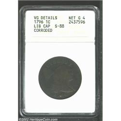 1796 1C Liberty Cap--Corroded--ANACS. VG Details, Net Good 4. S-88, R.4. The L in LIBERTY touches th