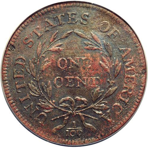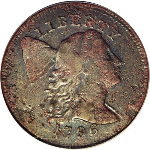 <B>1796<1C> Liberty Cap--Corroded--NCS. XF Details.</B></I> S-89, B-10, R.3. A scarcer die marriage recognized by the bust of Liberty being crowded between the date and LIBERTY. Unlike the majority of survivors, this dark brown example shows only a modest amount of circulation. However, patchy corrosion is seen about the obverse periphery and along the right side of the portrait. A fine porosity is evenly dispersed on the reverse. There is no loss of detail on either side as a result of the surface roughness. EAC 12.