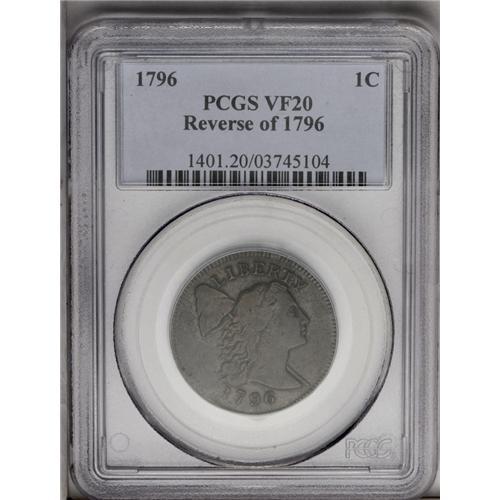 1796 1C Liberty Cap VF20 PCGS. S-91, R.3. The date is 1796[1C] Liberty Cap VF20 PCGS.
