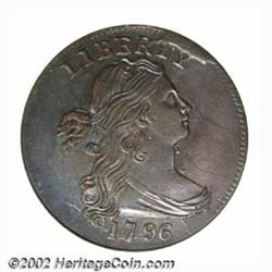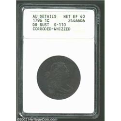 1796 1C Reverse of 1794--Corroded, Whizzed--ANACS. AU Details, Net XF40. S-110, R.3. A late die state, the obverse cud (as struck) over the TY in LIBERTY is readily evident. Several other breaks are evident in the right obverse field and around the date. This coin offers overall sharp definition for a more modest sum. Well centered, the surfaces, however, are a little glossy with dappled charcoal and orange-brown coloration. Noyes' 1991 Condition Census for Sheldon-110 (which is based on EAC grading standards) reads: 65; 60+; 55; 45; 40; 40. Important notice: We expect to be auctioning lots at the rate of 200-250 per hour. Sometimes eBay Premier live bid software cannot keep up with that pace, so we strongly recommend that you place a realistic proxy bid now as insurance to avoid disappointment. Also please note that all Heritage/CAA lots purchased through eBay Premier carry a 20% Buyer's Premium. Please make sure you read the Terms and Conditions.