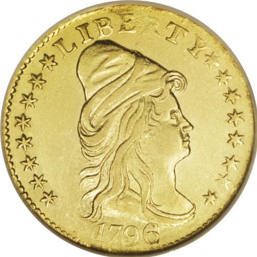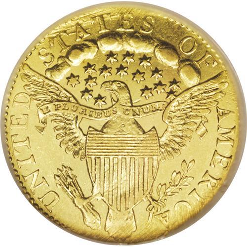 <B>1796 $2 1/2 Stars MS61 NGC.</B></I> Breen-6114, Bass-3003, BD-3, R.5. BD Die State b. Few of the With Stars quarter eagles were produced with significant numbers of varieties and/or die states. The surface reason for this is quite straightforward: Since so few early quarter eagles were minted, few dies were needed. Because mintages were small, the dies were not employed for long, accounting for the lack of die cracks, die breaks, cuds, lapping, clashing, and other factors that create a new die state.<BR> The reasons <I>why</B></I> so few quarter eagles were coined in the first place requires a bit more explanation, but <I>convenience</B></I> seems to be the key. Walter Breen's monumental <I>Encyclopedia of U.S. and Colonial Coins</B></I> suggests that most were held in local banks, subject to the infrequent requests from depositors for the denomination: "During this whole decade 1796-1807 , quarter eagles were coined only in isolated driblets of a few hundred or at most a few thousand pieces. In most of these years, each date represented a new design modification--creating instant rarities and type coins. The problem is less why the coins are rare, why so few were made to begin with, but why any were struck at all! To judge from available Archives records, they were ordered on whim by a few local banks (principally the Bank of Pennsylvania and the Bank of the United States); to judge from the condition of survivors, they spent most of their time in vaults. Between 1803 and 1833, the Mint's major output consisted of cents, half dollars, and half eagles; all other denominations had a kind of poor-relative status--seldom called for, few made, little welcome." From 1795 through 1804, more than 140,000 eagles totaling $1.4 million were coined. From 1804, when eagle coinage was discontinued, until 1838, when it was reinstated, the half eagle was produced in quantities of about 2.1 million pieces, or $10.5 million in face value. In contrast, the lowly quarter eagle was produced to the extent of only about 64,000 pieces totaling $160,000 from 1796 through 1834, when the Classic Head type premiered.<BR> Kentucky became the 15th state to join the Union in 1792, and accordingly the early U.S. gold and silver coins of 1794 and 1795, generally speaking, featured 15 stars on new dies. When Tennessee was admitted to the Union on June 1, 1796, coinage designs accommodated a 16th star on new dies, but Mint Director Elias Boudinot became aware that the burgeoning Union's stars would eventually crowd other design features off of the nation's coins. He accordingly ordered Engraver Robert Scot to limit the number of stars on new dies to the original 13.<BR> The 16 stars are arranged 8 x 8 on this With Stars quarter eagle, which Breen calls "very rare," noting that the 432 pieces of the issue were delivered on Jan. 14, 1797. The recently published Garrett-Guth <I>Gold Encyclopedia</B></I> says, "This subtype is somewhat rarer than the 1796 No Stars quarter eagle, yet it generally sells for much less in comparable grades. Most examples are in circulated condition, with a cluster at the About Uncirculated level that may represent some unreported resubmissions. Mint State examples are extremely rare; included among them is a single gem example. Late states of the dies show heavy lapping to remove clash marks."<BR> The present specimen appears to be from early in the BD Die State b. It shows light cracks from star 1 through 8, and a light crack from the 6 right into the field. Other cracks from that die state are not yet seen. The R in LIBERTY is quite weak, and light adjustment marks are noted on the reverse above TAT in STATES and through the eagle's tail feathers. Brilliant yellow-gold coloration is present on both sides, with good luster and light field chatter. For the early gold specialist, the significance of this incredible and historic early U.S. gold coin needs no further elaboration. Census: 2 in 61, 9 finer (11/06).<BR><BR><b>Shipping:</b> Coin/Currency (<a target="_blank" href="http://www.heritageauctions.com/common/shipping.php">view shipping information</a>)