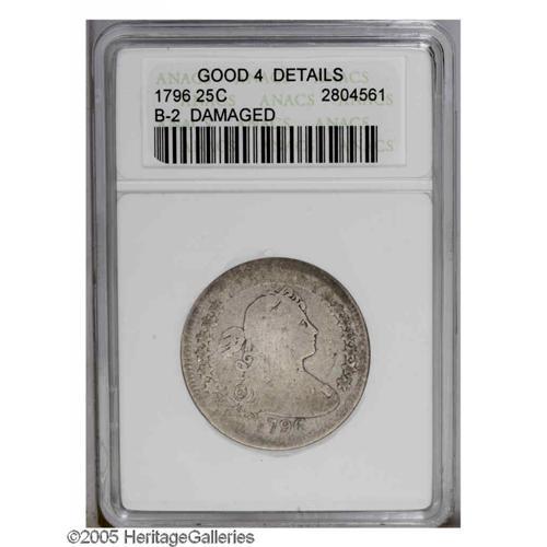 1796 25C --Damaged--ANACS. Good 4 Details. B-2, R.3. A 1796[25C]--Damaged--ANACS. Good 4 Details.