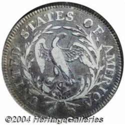 <B>1796<25C>--Graffiti, Cleaned, Scratched--ANACS. Fine Details, Net VG8.</B></I> B-2, R.3. The Draped Bust quarter with a Small Eagle reverse is a one year type coin with a production of 6,146 pieces. This example is nearly perfectly centered, as is typically the case, and shows strong dentilation on each side. Graffiti is located in the left obverse field to the left and below the ribbon bow. Seven or eight horizontal scratches are found on Liberty's neck and bust, and eight or nine more are present in the right obverse field. Seven or eight pinscratches occur on both of the eagle's wings and the adjacent fields. The surfaces are toned a dark bluish-gray, highlighting the lighter design elements.<BR><I>From The Paulsboro Collection, Part Two.</B></I> <BR><BR><B>Important notice:</B> Heritage usually auctions material at the rate of 200-250 lots per hour. On some occasions eBay Live bid software or the Internet may not be able to keep up with the pace of the auction. We recommend placing a realistic absentee bid now as insurance to avoid disappointment. Occasionally the auctioneer may eliminate or reject an eBay Live bid, and the auctioneer may also reopen a lot after the close of the eBay live bidding (usually because we missed an audience bid), and may reject your bid even if it shows you as the winning bidder. By bidding via eBay Live, you agree that Heritage may award the lot to another bidder at its sole discretion under the circumstances described above or any other reasonable circumstances. Since eBay bids are not shown to us until we open the lot on the floor, we treat those bids just like floor bids. In most cases the floor responds before the eBay bid is presented to us, due to Internet lag time, so for consistency we have made it a policy that floor bids are always considered first over tie eBay live bids. Also please note that all Heritage lots purchased through eBay Live carry a 20% Buyer's Premium. Please make sure you read the Terms and Conditions before you bid. </span></font></tr></table></td></tr></table>