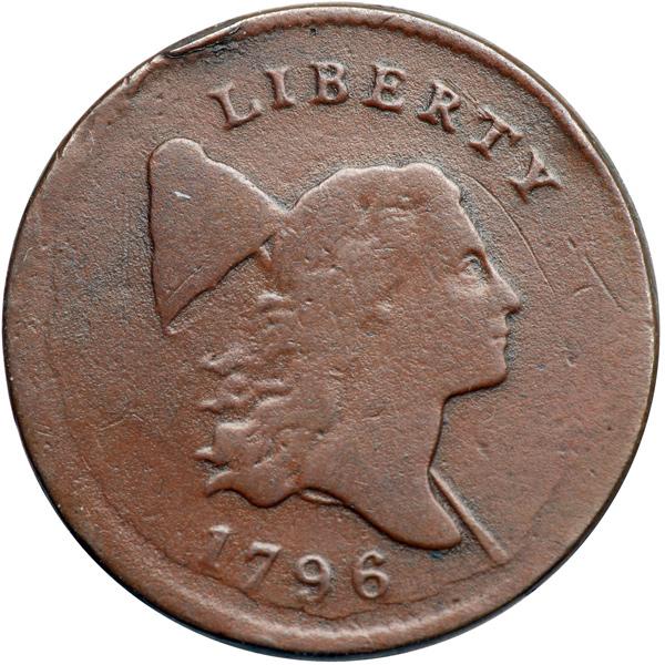 1796 C-2 With Pole Electrotype Copy. Fine-15. Glossy reddish chocolate brown. An attractive copy, essentially as made to simulate the model coin. A minor rim bruise over the L in LIBERTY and a light scratch under TY are the notable marks.