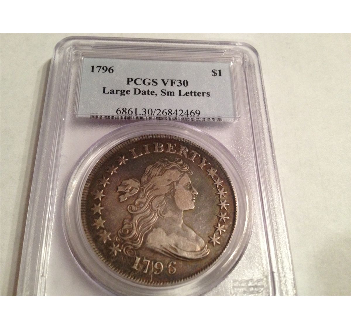 1796 DRAPED BUST DOLLAR PCGS VF-30 LG DATE SM LETTERS.HARD TO FIND ONE WITH NO PROBLEMS AND NOT CLEANED LIKE THIS ONE