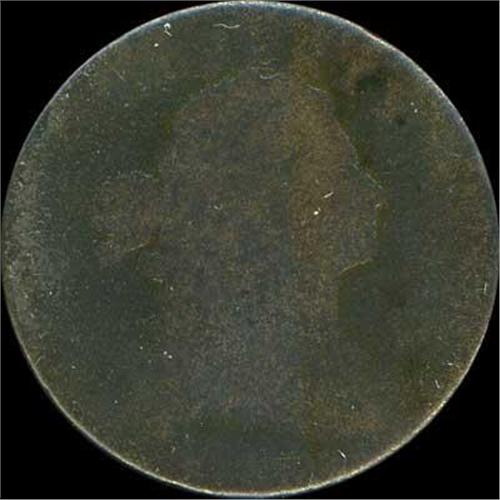 Rather glossy dark steel and olive brown. No significant defects, just well worn. The upper third of the date is visible but the remainder is gone, the tops of LIHERTY are worn into the rim above, and about 20% of the reverse is still readable. The B over inverted B feature in LIBERTY (the so-called H) is visible but not strong, and enough of the reverse remains visible to positively identify the die variety.