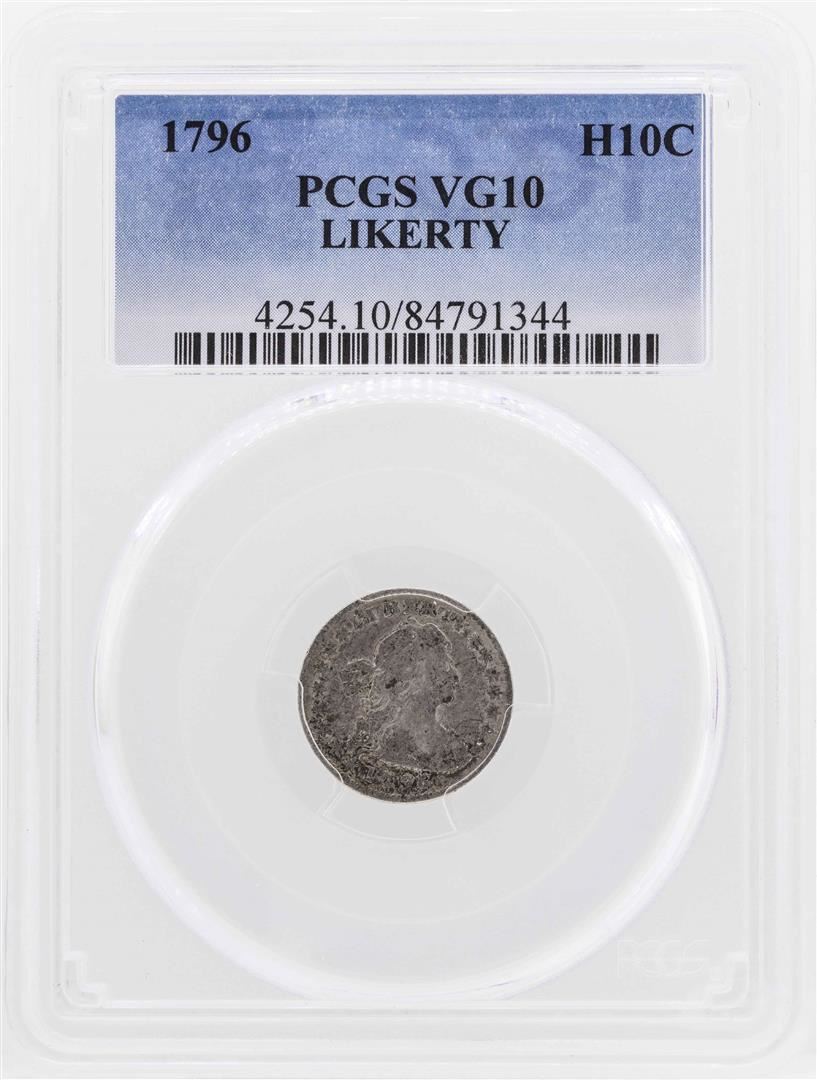 One 1796 Draped Bust Half Dime Liberty Coin PCGS VG10. PCGS Graded.