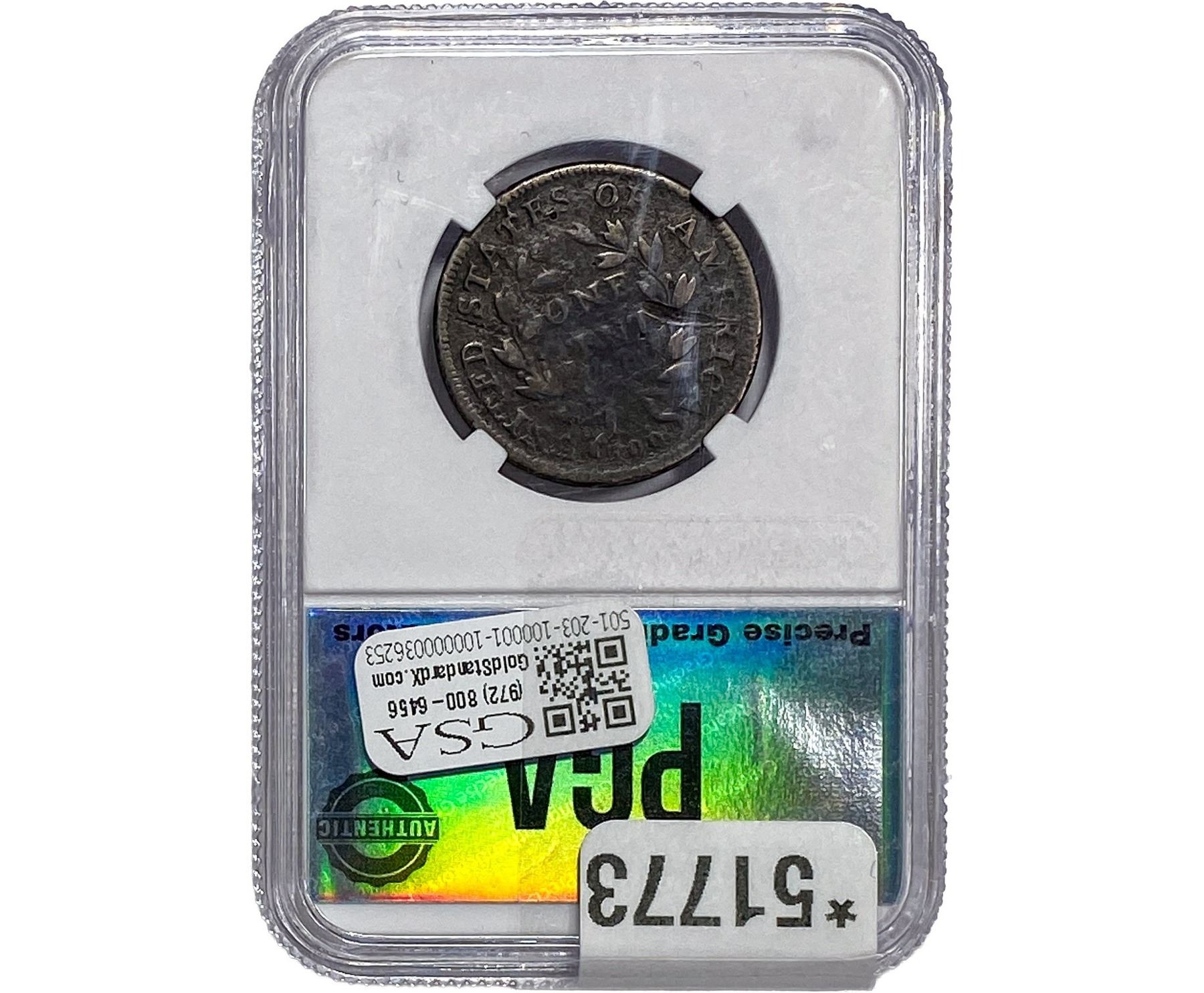 l. All non-certified coins and currency are guaranteed genuine, but are not guaranteed as to grade, since grading is a matter of opinion, an art and not a science, and therefore the description rendered by GSA or any third-party grading service may not agree with the opinion of others (including trained experts), and the same expert may not grade the same item with the same grade at two different times. GSA may, but is not obligated to, express an opinion as to non-certified numismatic items, in GSA’s opinion, or by its employees’ experience and the current interpretation of the American Numismatic Association’s standards as of the date the catalog was prepared. There is no guarantee or warranty expressed or implied that the grading opinions utilized by GSA, if any, will meet the standards of any grading service at any time in the future.