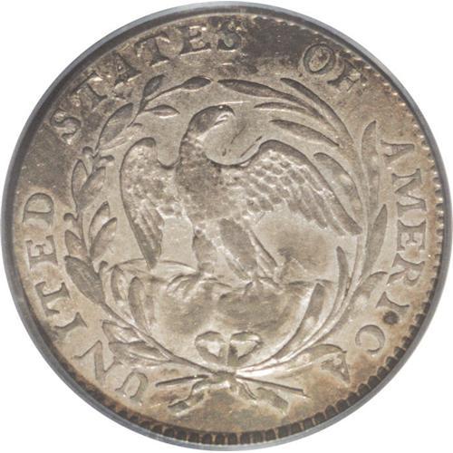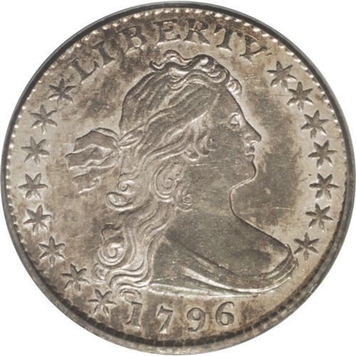 <B>1796<H10C> AU58 PCGS.</B></I> V-1, LM-1, R.3. Labeled as a LIKERTY variety by PCGS, but the serifs of the B, while delicate, remain present. This magnificently defined near-Mint example has only a hint of wear on the eagle's body. Luminous luster is extensive. Careful inspection fails to locate marks, and a tiny spot near the I in AMERICA is noted solely for pedigree purposes.<BR><I>From The Royal Oak Collection.</B></I>