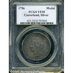 <B>1796 MEDAL Castorland Medal, Silver VF35 PCGS.</B></I> This medal appears to be an early restrike. The centers are slightly thicker than the peripheries, and there is just the faintest trace of die rust close to the sap pot's handle. The edge is reeded and there does not appear to be any restrike marking on the edge--although, admittedly, it is difficult to examine the edge through the PCGS holder. Well defined with light gray toning over each side, there are no mentionable abrasions. Listed on page 63 of the 2005 <I>Guide Book.</B></I>