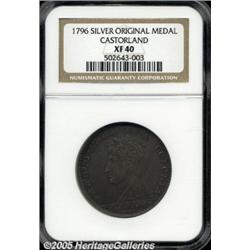 <B>1796 MEDAL Castorland Medal, Silver XF40 NGC.</B></I> Following the founding of the Revolutionary Tribunal in 1792, numerous families fled France for upper New York State. They chose a beaver (or castor in French) as the mascot of the proposed settlement. Before departing France, the trustee of the settlement persuaded the Paris Mint to strike silver ecus for the colonists. These pieces were taken to New York and placed into circulation. The settlement, christened Castorland, is now the town of Carthage, New York.<BR> While most survivors of this issue are understandably well worn, the present example is among the finest available to today's collectors. In fact, wear is one of the characteristics of an original Castorland token. In a conversation with John Ford in August 1997, he stated that the finest original he knew of was a VF35--and, of course, he owned it. The convex centers are evident on this piece from the uneven wear pattern seen in the centers, especially the center of the reverse. We see no trace of die rust on the reverse, indicating this is indeed an original striking. The surfaces are toned a deep gunmetal-gray and the only mark of any consequence is a small planchet flaw in the lower right reverse field. Listed on page 63 of the 2005 <I>Guide Book.</B></I>