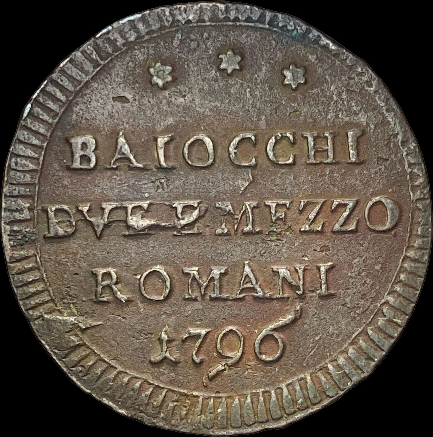 1796 Papal States 2 1/2 Baiocchi NEARLY UNCIRCULATED