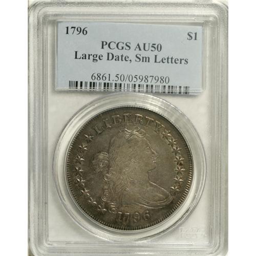 1796 S$1 Large Date, Small Letters AU50 PCGS. B-5, BB-