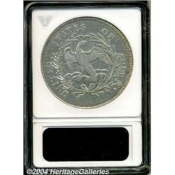 <B>1796<S$1> Large Date, Small Letters--Cleaned--ANACS. AU Details, Net XF40.</B></I> B-5, BB-65, Low R.2. Showing the diagnostic die lump at the top right of the I in AMERICA. Softly struck in the centers, but there are remarkably few abrasions for a coin that has seen modest circulation, albeit in the distant past. Dove-gray patina overall with some underlying gold and alabaster coloration. Moderately hairlined and well centered with no adjustment marks. <BR><BR><B>Important notice:</B> Heritage usually auctions material at the rate of 200-250 lots per hour. On some occasions eBay Live bid software or the Internet may not be able to keep up with the pace of the auction. We recommend placing a realistic absentee bid now as insurance to avoid disappointment. Occasionally the auctioneer may eliminate or reject an eBay Live bid, and the auctioneer may also reopen a lot after the close of the eBay live bidding (usually because we missed an audience bid), and may reject your bid even if it shows you as the winning bidder. By bidding via eBay Live, you agree that Heritage may award the lot to another bidder at its sole discretion under the circumstances described above or any other reasonable circumstances. Since eBay bids are not shown to us until we open the lot on the floor, we treat those bids just like floor bids. In most cases the floor responds before the eBay bid is presented to us, due to Internet lag time, so for consistency we have made it a policy that floor bids are always considered first over tie eBay live bids. Also please note that all Heritage lots purchased through eBay Live carry a 20% Buyer's Premium. Please make sure you read the Terms and Conditions before you bid. </span></font></tr></table></td></tr></table>