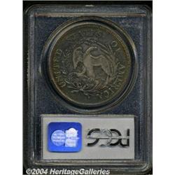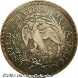 <B>1796<S$1> Small Date, Large Letters AU53 PCGS.</B></I> B-4, BB-61. Easily identified by the die dot over the 1 in the date, and the location of a berry under the first T in STATES on the reverse. The B-4 is the most frequently encountered variety of the year. This is a lovely, original coin with an abundant amount of multicolored toning over each side including a mixture of variegated gray, gold, sea-green, and deep red colors being represented throughout. Bright luster glistens beneath the toning as the coin is turned under a light. Other than minimal wear, there are no mentionable post-striking marks or other detractions. Certainly a worthwhile example of this popular, conditionally elusive Bust Dollar. Population: 2 in 53, 6 finer (3/04). Formerly as lot 11 in the American Auction Association (Bowers and Ruddy) catalog of The Austin Collection, sold on May 31, 1974, and cataloged in that sale as "<B>Uncirculated,</B></I> with light friction on the very highest parts. Beautifully toned an iridescent gray color. Only when old-time collections are marketed does one have the opportunity to acquire such a magnificent coin."<BR><I>From The Willamette Collection.</B></I> <BR><BR><B>Important notice:</B> Heritage usually auctions material at the rate of 200-250 lots per hour. On some occasions eBay Live bid software or the Internet may not be able to keep up with the pace of the auction. We recommend placing a realistic absentee bid now as insurance to avoid disappointment. Occasionally the auctioneer may eliminate or reject an eBay Live bid, and the auctioneer may also reopen a lot after the close of the eBay live bidding (usually because we missed an audience bid), and may reject your bid even if it shows you as the winning bidder. By bidding via eBay Live, you agree that Heritage may award the lot to another bidder at its sole discretion under the circumstances described above or any other reasonable circumstances. Since eBay bids are not shown to us until we open the lot on the floor, we treat those bids just like floor bids. In most cases the floor responds before the eBay bid is presented to us, due to Internet lag time, so for consistency we have made it a policy that floor bids are always considered first over tie eBay live bids. Also please note that all Heritage lots purchased through eBay Live carry a 20% Buyer's Premium. Please make sure you read the Terms and Conditions before you bid. </span></font></tr></table></td></tr></table>