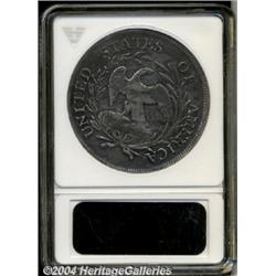 <B>1796<S$1> Small Date, Large Letters--Plugged, Whizzed--ANACS. Fine Details, Net VG8.</B></I> B-4, BB-61, R.1. A berry is located below the first T in STATES, affirming this variety. Numerous hairlines are attached to the unnaturally bright, moderately abraded surfaces that are retoning a light silver-gray. The plug appears to be at the ER of LIBERTY.<BR><I>From The Paulsboro Collection, Part Two.</B></I> <BR><BR><B>Important notice:</B> Heritage usually auctions material at the rate of 200-250 lots per hour. On some occasions eBay Live bid software or the Internet may not be able to keep up with the pace of the auction. We recommend placing a realistic absentee bid now as insurance to avoid disappointment. Occasionally the auctioneer may eliminate or reject an eBay Live bid, and the auctioneer may also reopen a lot after the close of the eBay live bidding (usually because we missed an audience bid), and may reject your bid even if it shows you as the winning bidder. By bidding via eBay Live, you agree that Heritage may award the lot to another bidder at its sole discretion under the circumstances described above or any other reasonable circumstances. Since eBay bids are not shown to us until we open the lot on the floor, we treat those bids just like floor bids. In most cases the floor responds before the eBay bid is presented to us, due to Internet lag time, so for consistency we have made it a policy that floor bids are always considered first over tie eBay live bids. Also please note that all Heritage lots purchased through eBay Live carry a 20% Buyer's Premium. Please make sure you read the Terms and Conditions before you bid. </span></font></tr></table></td></tr></table>