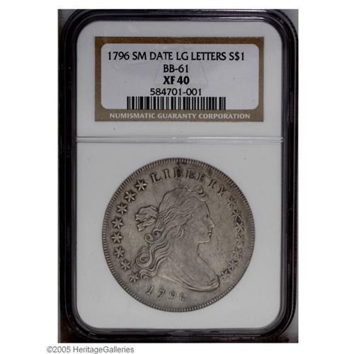 1796 S$1 Small Date, Large Letters XF40 NGC. B-4, BB-6 1796[S$1] Small Date, Large Letters XF40 NGC.