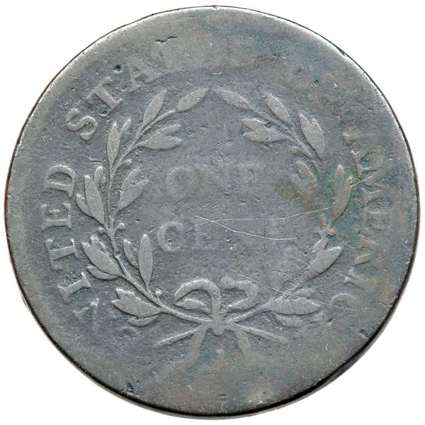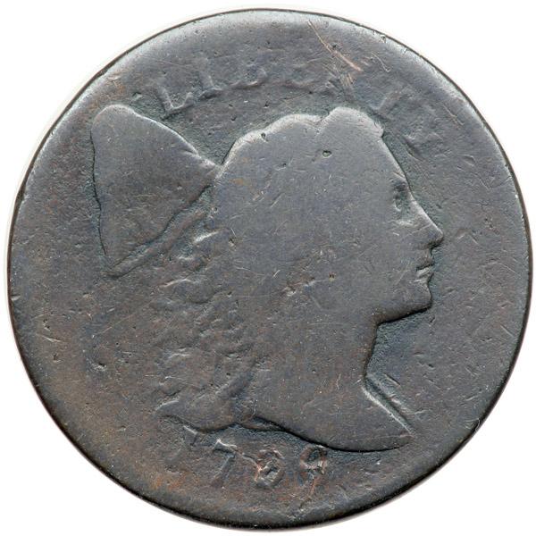 1796 S-89 R3 Liberty Cap AG3. A couple points sharper, especially on the obverse, but there are small, relatively fresh digs on the 9 and 6 in the date that distort those digits a bit. Otherwise the date is clear. No roughness or verdigris and the only other defects are some light contact marks at the R in LIBERTY. The legends are readable although some of the letters are weak. Glossy dark chocolate brown and steel.