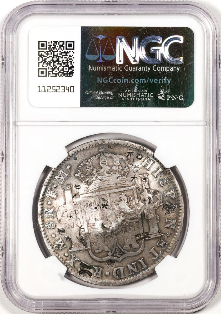 One 1796MO FM Mexico 8 Reales Silver Coin NGC Chopmarked. NGC Certified.
