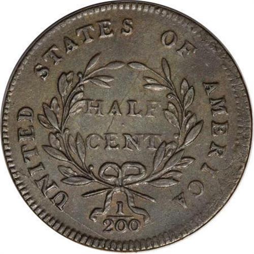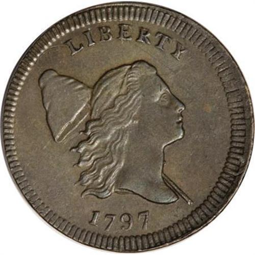 <B>1797 1/2 C Plain Edge--Scratched--Uncertified. MS60 Details.</B></I> C-2, B-2, R.3. Only three varieties of 1797 half cents are known, and each has a distinctive obverse. This Cohen-2 variety is the most "perfect" of the three, with a well-centered head and only one 1 in the date. The scratches are generally light and mostly located on the obverse near the portrait, with a pinscratch from 1 o'clock to the E in CENT visible on the reverse under scrutiny. None has an undue effect on the eye appeal of this coin, a pleasing chocolate-brown piece with full details and more than a little remaining luster. Unusually sharp for this issue, which is usually found well-circulated. EAC 40.<BR><BR><B>Coin Engraver:</B> John Smith Gardner<BR><BR><b>Shipping:</b> Coins & Currency (<a target="_blank" href="http://www.heritageauctions.com/common/shipping.php">view shipping information</a>)