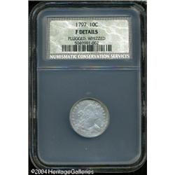 1797 10C 16 Stars Fine Details, Plugged, Whizzed, NC <B>1797 10C 16 Stars Fine Details, Plugged, Whizzed, NCS.</B></I> JR-1, R.4. A bright, wavy, and granular representative that has a change in color near the bust truncation that suggests a plug. A depression affects the second T in STATES. A nicely detailed example of this elusive early silver type. <BR><BR><B>Important notice:</B> Heritage usually auctions material at the rate of 200-250 lots per hour. On some occasions eBay Live bid software or the Internet may not be able to keep up with the pace of the auction. We recommend placing a realistic absentee bid now as insurance to avoid disappointment. Occasionally the auctioneer may eliminate or reject an eBay Live bid, and the auctioneer may also reopen a lot after the close of the eBay live bidding (usually because we missed an audience bid), and may reject your bid even if it shows you as the winning bidder. By bidding via eBay Live, you agree that Heritage may award the lot to another bidder at its sole discretion under the circumstances described above or any other reasonable circumstances. Since eBay bids are not shown to us until we open the lot on the floor, we treat those bids just like floor bids. In most cases the floor responds before the eBay bid is presented to us, due to Internet lag time, so for consistency we have made it a policy that floor bids are always considered first over tie eBay live bids. Also please note that all Heritage lots purchased through eBay Live carry a 20% Buyer's Premium. Please make sure you read the Terms and Conditions before you bid. This lot is being auctioned in conjunction with a live floor auction by Heritage Galleries & Auctioneers. All final auction and invoice information will be supplied by Heritage Galleries & Auctioneers, and all other information should be considered preliminary. Lot:5699
