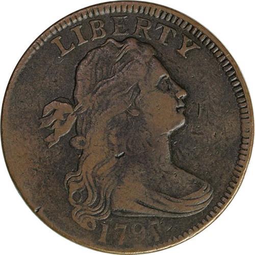 <B>1797<1C> Reverse of 1797, No Stems. S-132, B-28, R.5. VF20 NGC. Fine 12 EAC.</B></I> Die State II. In this die state a narrow rim break joins three dentils above IC on the reverse. Breen comments that this variety is "often banged up or even mutilated," so this attractive and rare coin with minimal distractions should fetch a nice premium. This example is struck on a dark-brown, slightly porous planchet. A couple of small obverse pits reveal themselves under a glass, and there is a reverse nick on the leftmost top leaf. The coin is nicely detailed for the grade, with about two-thirds of the obverse dentilation present. The reverse is weak at NE and OF A, but nearly all of the reverse dentilation is present. An appealing specimen, and another important opportunity for the variety specialist. Del Bland has graded this example Fine 15 and tied for sixth finest known, while Bill Noyes says VG10 and 12th finest known. A significant pedigree adds even more.<BR><I>Ex: Judge Thomas L. Gaskill; New Netherlands, privately (11/1956); Dorothy Paschal; Dr. William H. Sheldon; Basil Woolf (3/1968); John D. Wright; Gordon J. Wrubel; Ray Chatham; Dr. Bryon M. Stuart; 1977 ANA Sale (Kagin's, 8/1977), lot 270; Dr. Willard J. Carmel; Del Bland (1/14/1982).</B></I> Envelope Included.