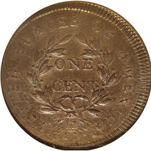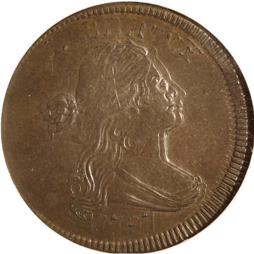 1797 1C Reverse of 1797, Stems--Double Struck--MS65 Br