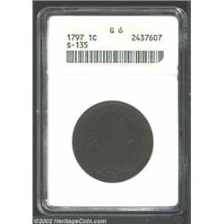 1797 1C Reverse of 1797, Stems Good 6 ANACS. S-135, High R.3. A dark and somewhat porous example tha