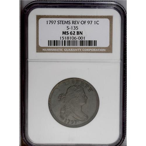 1797 1C Reverse of 1797, Stems MS62 Brown NGC. S-135,